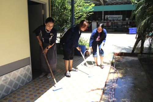 ทำความสะอาดลานวัดและห้องน้ำวัด