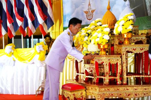 พช.ยโสธร ร่วมน้อมรำลึกในพระมหากรุณาธิคุณ ร.9 วางพานพุ่มดอกไม้สด เนื่องในวันบิดาแห่งฝนหลวง ประจำปี 2568
