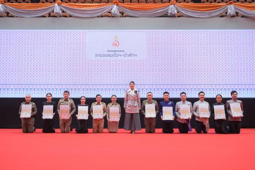 โดยมีนางสาวศศิธร กิตติธรกุล รัฐมนตรีช่วยว่าการกระทรวงมหาดไทย นายอรรษิษฐ์ สัมพันธรัตน์ ปลัดกระทรวงมหาดไทย นางจิณณารัชช์ สัมพันธรัตน์ นายกสมาคมแม่บ้านมหาดไทย นายสยาม ศิริมงคล อธิบดีกรมการพัฒนาชุมชน นางอรจิรา ศิริมงคล ประธานชมรมแม่บ้านพัฒนาชุมชน ผู้บริหารกระทรวงมหาดไทย ผู้บริหารกระทรวงพาณิชย์ ผู้ว่าราชการจังหวัดภาคตะวันออกเฉียงเหนือ คณะผู้บริหารกรมการพัฒนาชุมชน พัฒนาการจังหวัดภาคตะวันออกเฉียงเหนือ เจ้าหน้าที่ และผู้ประกอบการจากจังหวัดต่าง ๆ เฝ้ารับเสด็จ