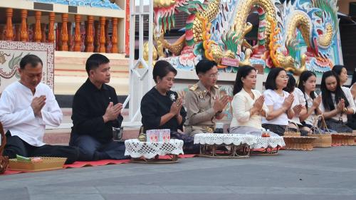ในครั้งนี้ นายชาญชัย ศรศรีวิชัย ผู้ว่าราชการจังหวัดยโสธร เป็นประธานกิจกรรม โดยมีนางนันทพร ศรศรีวิชัย นายกเหล่ากาชาดจังหวัดยโสธร นายวิเชียร สุดาทิพย์ ปลัดจังหวัดยโสธร นายบรรลือ พลับพลึง พัฒนาการจังหวัดยโสธร, หัวหน้าส่วนราชการ, บุคลากร, เจ้าหน้าที่ และพุทธศาสนิกชน เข้าร่วมทำบุญตักบาตรข้าวสารอาหารแห้งแด่พระภิกษุสงฆ์ โดยผู้เข้าร่วมต่างพร้อมใจกันแต่งกายด้วย ชุดผ้าไทยและผ้าพื้นเมืองโทนสีดำไว้ทุกข์ เพื่อถวายความอาลัยแด่ สมเด็จพระนางเจ้าสิริกิติ์ พระบรมราชินีนาถ พระบรมราชชนนีพันปีหลวง