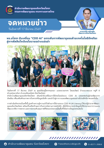 สำนักงานพัฒนาชุมชนจังหวัดยโสธร เดินหน้าขับเคลื่อนการใช้ประโยชน์ระบบ CDD AI แพลตฟอร์มผู้ช่วยพัฒนากรอัจฉริยะ เพื่อเสริมศักยภาพการวิเคราะห์ข้อมูลเชิงลึก และนำไปสู่การวางแผนพัฒนาชุมชนอย่างมีประสิทธิภาพและยั่งยืน