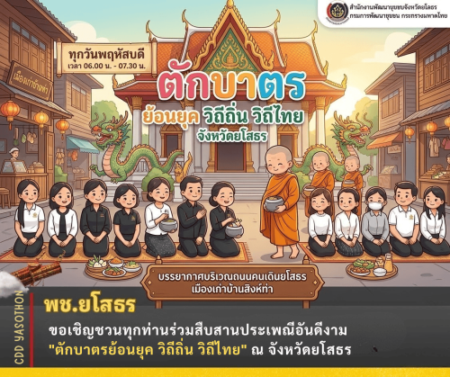ขอเชิญชวนทุกท่านร่วมสืบสานประเพณีอันดีงาม "ตักบาตรย้อนยุค วิถีถิ่น วิถีไทย" ณ จังหวัดยโสธร