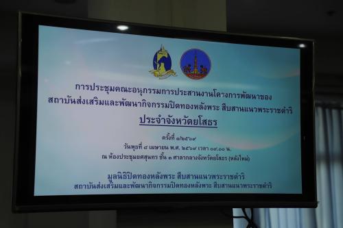 วันที่ 8 เมษายน 2569 ณ ห้องประชุมยศสุนทร ชั้น 3 ศาลากลางจังหวัดยโสธร นายขรรค์ไชย ทันธิมา รองผู้ว่าราชการจังหวัดยโสธร เป็นประธานการประชุมคณะอนุกรรมการประสานงานโครงการพัฒนาของสถาบันส่งเสริมและพัฒนากิจกรรมปิดทองหลังพระ สืบสานแนวพระราชดำริ ประจำจังหวัดยโสธร ครั้งที่ 1/2569 ร่วมกับนายวรยุทธ เนาวรัตน์ ผู้อำนวยการสถาบันส่งเสริมและพัฒนากิจกรรมปิดทองหลังพระฯ และหน่วยงานภาคีเครือข่ายที่เกี่ยวข้อง เพื่อบูรณาการขับเคลื่อนการพัฒนาทรัพยากรน้ำและยกระดับคุณภาพชีวิตประชาชนตามหลักปรัชญาของเศรษฐกิจพอเพียง
