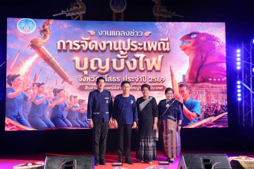 นายชาญชัย ศรศรีวิชัย ผู้ว่าราชการจังหวัดยโสธร พร้อมด้วย นายณัฐพล นาคสุข นายกเทศมนตรีเมืองยโสธร และนางธนภร พูลเพิ่ม ผู้อำนวยการ ททท. สำนักงานอุบลราชธานี นำคณะผู้บริหาร หัวหน้าส่วนราชการ เจ้าหน้าที่ ร่วมประกอบพิธีสักการะองค์พญาแถนเพื่อเบิกฤกษ์ความสิริมงคล ก่อนร่วมกันแถลงข่าวการจัดงานประเพณีบุญบั้งไฟ ประจำปี 2569 ที่จะเกิดขึ้นระหว่างวันที่ 8 – 10 พฤษภาคม 2569 โดยไฮไลท์สำคัญของปีนี้คือการปรับเวลาพิธีเปิดและขบวนแห่ จากช่วงเช้ามาเป็นเวลา 16.00 น. เป็นต้นไป เพื่อเลี่ยงสภาพอากาศที่ร้อนจัดและป้องกันสภาวะฮีทสโตรกสำหรับผู้ร่วมขบวนและนักท่องเที่ยวที่มาชมความงดงาม แต่ที่สำคัญกว่านั้นคือเป็นการเปิดโอกาสให้ 22 ขบวนแห่ ได้จัดเต็มเรื่อง แสง สี เสียง เพื่อสร้างความตระการตาในแบบที่ไม่เคยเกิดขึ้นมาก่อน ซึ่งตลอด 3 วัน 3 คืนนั้นมีกิจกรรมอัดแน่น ตั้งแต่จิตวิญญาณจนถึงความสนุกแบบสุดมันส์กับฟรีคอนเสิร์ต โดยวันแรก 8 พฤษภาคม จะให้ทุกคนได้ชมความงดงามของบั้งไฟเอ้ที่จอดเรียงรายอวดโฉมทั่วเมือง พร้อมกับการประชันความสนุกของการประกวดกองเชียร์ที่มีเวทียาวตลอดถนนแจ้งสนิทและฟรีคอนเสิร์ตจากนักร้องชื่อดัง ส่วนวันที่ 9 พฤษภาคมเป็นการย้อนรอยรากเหง้าบุญบั้งไฟกับขบวนมเหสักข์หลักเมืองที่ยังคงจารีตประเพณีดังเดิมในช่วงเช้า ต่อด้วยการประกวดกาพย์เซิ้ง และเข้าสู่ไฮไลท์ขบวนแห่สุดอลังการในเวลา 16.00 น. และปิดท้ายค่ำคืนด้วยหมอลำเรื่องต่อกลอนระดับแนวหน้าที่จะมาถ่ายทอดตำนานพญาแถนในรูปแบบร่วมสมัย และวันที่ 10 พฤษภาคมเป็นวินาทีระทึกใจกับการแข่งขันจุดบั้งไฟแฟนซีและบั้งไฟแสน ณ สวนสาธารณะพญาแถน เพื่อบูชาพญาแถนตามความเชื่อโบราณ ซึ่งในโอกาสนี้ผู้ว่าราชการจังหวัดยโสธร ได้เน้นย้ำว่างานบุญบั้งไฟคือจิตวิญญาณของคนยโสธรที่ต้องกลับบ้านมาเพื่อร่วมงานซึ่งมักเดินทางกลับมากกว่าช่วงสงกรานต์ โดยปีนี้ยังมีกิจกรรมเด่นเพิ่มเติมอีกมากมายโดยเฉพาะอย่างยิ่งการโชว์ ลาบยโสธร ให้ผู้ที่มาร่วมงานได้มีสิทธิ์ลิ้มรสความอร่อยกับอัตลักษณ์อาหารท้องถิ่นที่รู้จักไปทั่วโลก โดยในส่วนของการเตรียมพร้อมในเรื่องของที่พักและความปลอดภัยนั้น ได้มีการจัดกำลังพลให้พร้อมปฏิบัติการดูแลประชาชนและนักท่องเที่ยวตลอด 24 ชั่วโมง พร้อมระบบ CCTV คอยสนับสนุน โดยเชื่อว่าวันที่ 8-10 พฤษภาคมนี้ ใครที่มาเยือนยโสธรจะไม่ได้เห็นแค่บั้งไฟ แต่จะได้เห็น รอยยิ้ม ความรัก และความศรัทธาที่ยิ่งใหญ่ที่สุดในโลกอย่างแน่นอน และเพื่อตอบโจทย์ความต้องการด้านการท่องเที่ยวที่มากยิ่งขึ้น