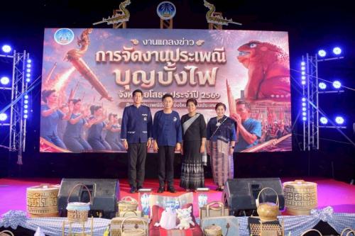 พช.ยโสธรร่วมแถลงข่าวการจัดงานประเพณีบุญบั้งไฟ ประจำปี 2569 วันที่ 24 เมษายน 2569 ที่บริเวณสวนวิมานพญาแถน อำเภอเมืองยโสธร จังหวัดยโสธร